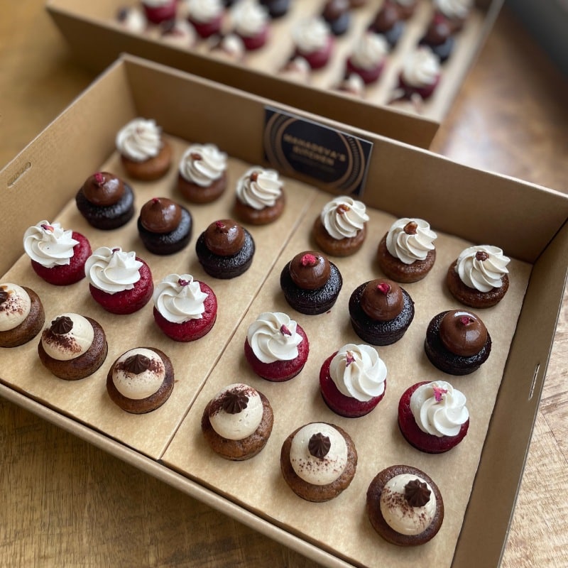 Petit Four Box of 24 Cakes is an assorted selection of our signature two bite mini cakes, designed for sharing, catering, and occasions where variety matters.