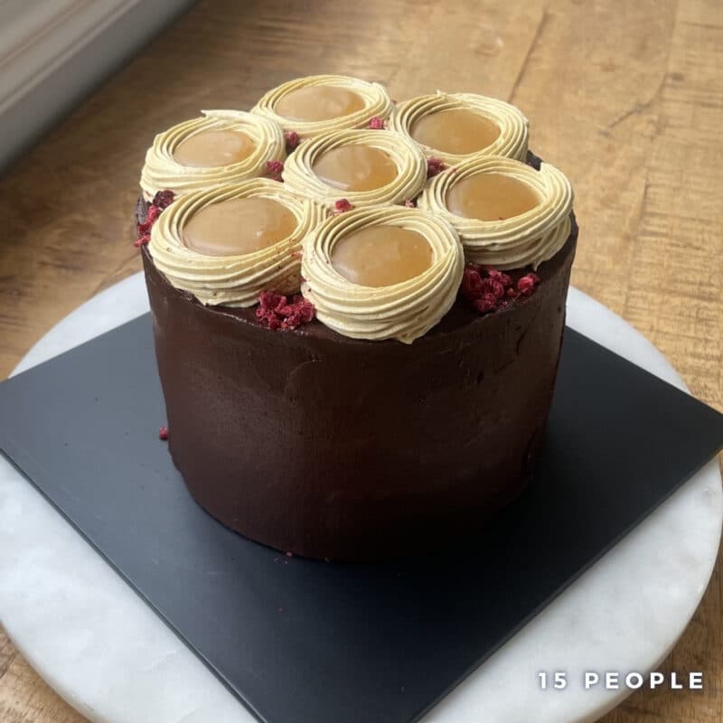 A rich and indulgent three layered chocolate cake layered with house-made caramel, smooth ganache and a light caramel cream, delivering a deeper, more caramel-forward sweetness than our classic cakes.
